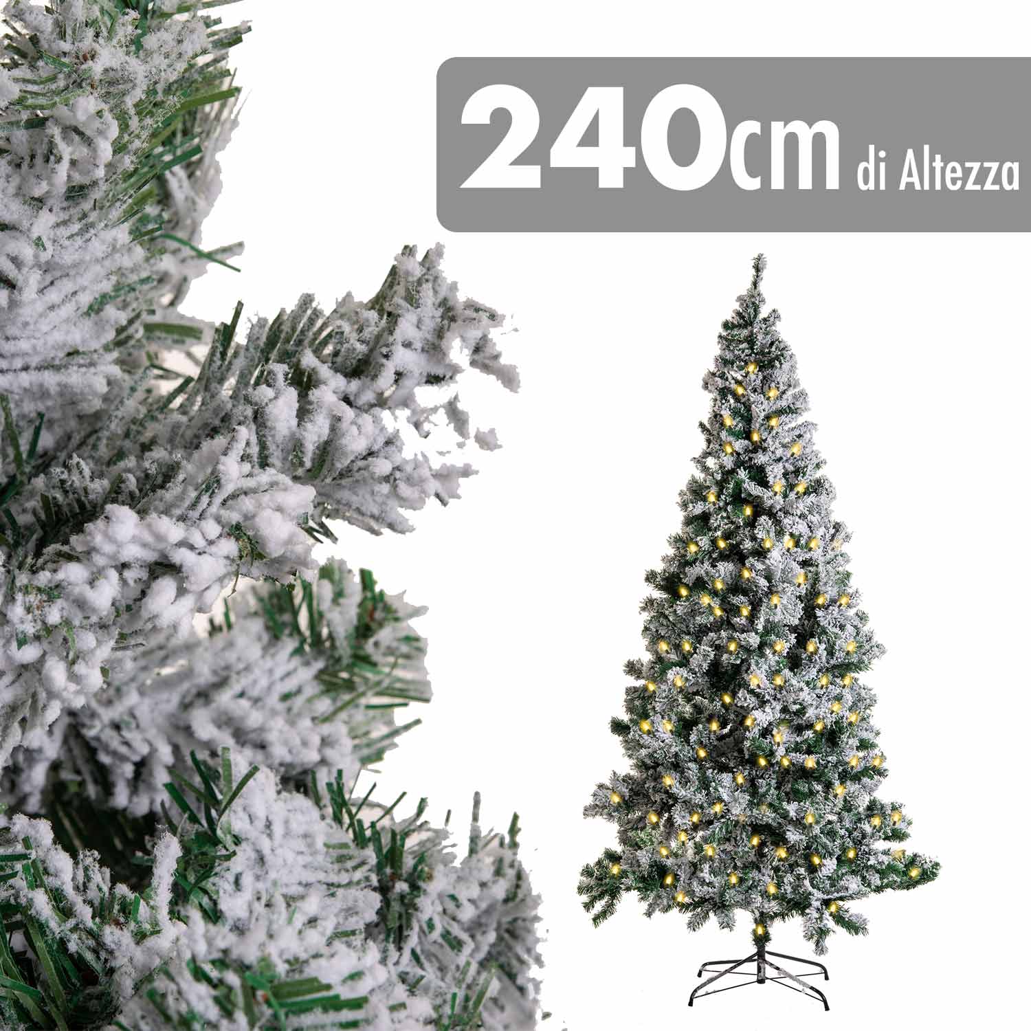 Verde Perfetto : Alto ben 240cm equipaggiato da 1200 rami molto folti ed innevati l'albero di natale a marchio AMC e' indispensabile per le tue feste natalizie, dai un tocco in piu' per il tuo natale