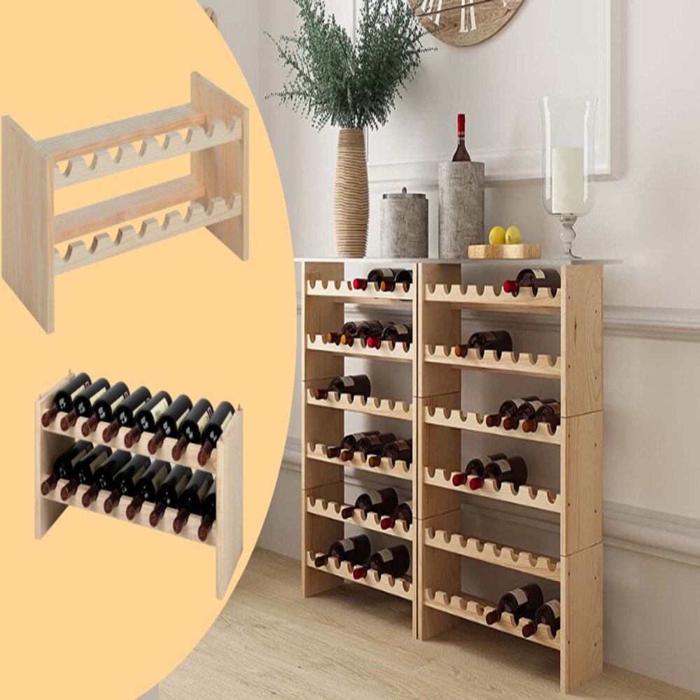 Utile per i collezionisti e appassionati di vino: questa cantinetta e' tutto quello che ti occorre per esporre o conservare le tue bottiglie in casa o in taverna. Fornita in kit di montaggio, il porta bottiglia e' dotato di 16 slot o posti per le tue bottiglie. Realizzata in legno di pino naturale laminato, questa tipologia di lavorazione ti permette di verniciare la cantinetta portabottiglie del colore che preferisci o lasciarla nel suo elegante colore naturale. Aggiungendo, altri moduli, potrai personalizzare la tua cantinetta in base alle tue esigenze.