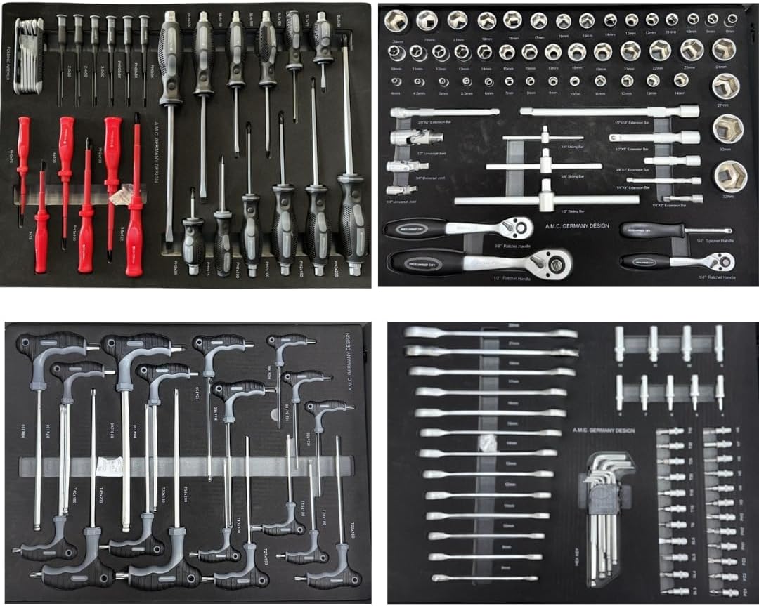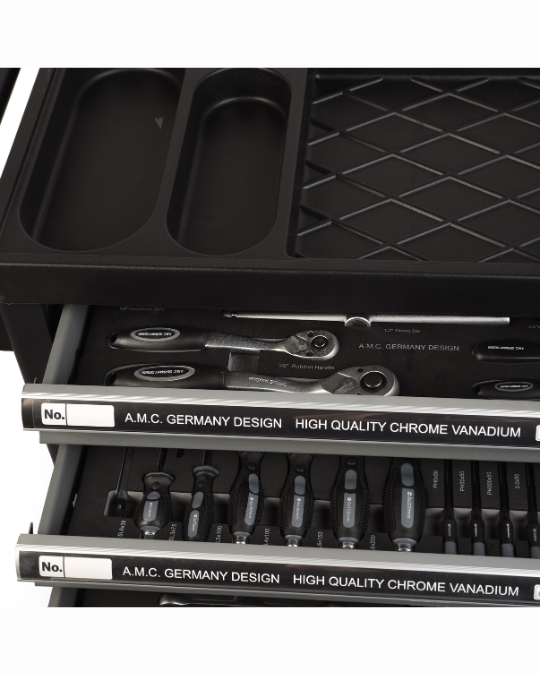 Il carrello comprende sei cassetti per l'organizzazione dei 428 utensili compresi nell'offerta