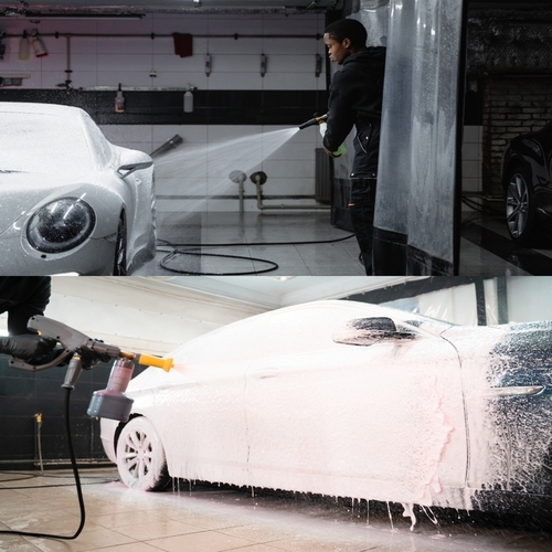 Viene fornito con ugello da 0 gradi e 40gradi con annaffiatoio in schiuma per una pulizia profonda delle auto.