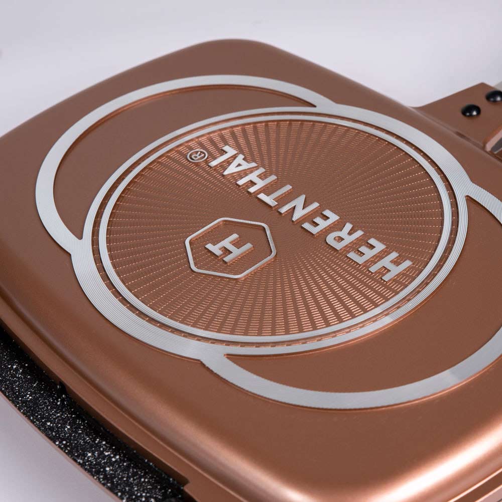 La padella a doppia piastra bistecchiera da 28cm Herenthal permette una cottura uniforme del cibo, che si tratti di carne o di un panino. Il rivestimento antiaderente ti rende libero da burro ed olio, cosi' da poterti finalmente godere il tuo stile di vita sano.
