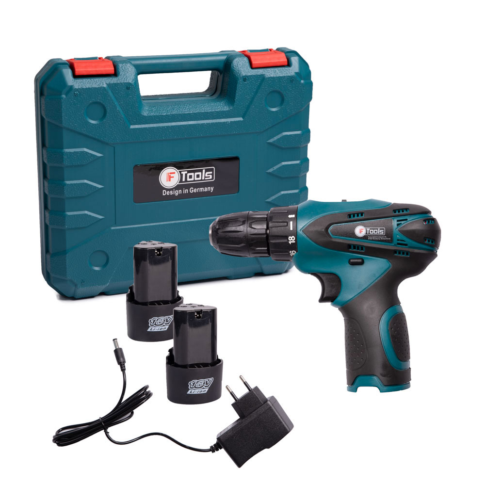 Avvitatore a batteria da 18V con doppia batteria in dotazione e caricabatterie completa il tutto un kit di accessori incluso in una comoda valigetta per il facile trasporto.
